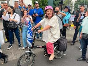 con las manos. Ante el desorden que se generó, debido a la falta de organización y en medio de empujones de los medios de comunicación y panistas, la candidata se retiró de este cruce en su bicicleta.
