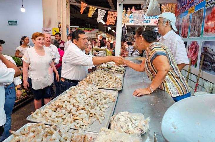 En el recorrido al mercado José María Pino Suárez, saludamos a locatarios y visitantes, la gente está animada, mantiene encendida la llama de la esperanza y confía en nosotros, porque sabe que estamos acostumbrados a cumplir.