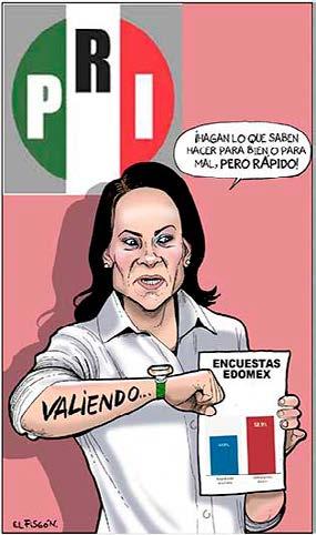 para el Estado de México en este momento?”, 72% respondió “que haya un cambio de partido en el gobierno”; y solo 21% que “siga gobernando el PRI” mientras que el 7% no sabe.