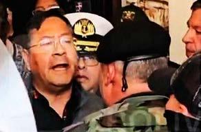 “El Presidente democrático de Bolivia, Luis Arce, se encara con el General golpista Zúñiga y le ordena que desmovilice a los sublevados”.
