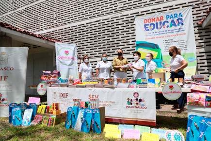 TAB., AGOSTO 26 DE 2022.- La presi denta del Sistema DIF Ta basco, Guadalupe Castro de Merino, presidió este viernes la entrega de pa quetes de útiles escola res, despensas, artículos de limpieza y ropa en be neficio de las personas más necesitas, a través de la campaña “Donar es Educar”, que se manten drá hasta el 2 de septiem bre en el Salón Alas de Villahermosa.Enesta ocasión las donaciones se reali zaron por parte del Volun tariado del Tribunal Supe rior de Justicia y del Vo luntariado de la Secreta ría de Gobierno en apoyo a la educación de niñas, niños y adolescentes en situación de vulnerabili dad. La esposa del go bernador Carlos Manuel Merino Campos agrade ció la entrega de los úti les, víveres y productos recolectados que fueron donados por el personal de las diferentes áreas de la Secretaría de Gobier no y del Tribunal Superior de Justicia que acudieron al llamado de las Damas Voluntarias de ambas de pendencias.“Quiero agradecer a todas las personas que han venido a donar, por que sí se ha activado mu cho en estos últimos días muchas personas han venido a dejarnos varios materiales útiles escola res para las personas que los van a necesitar para este inicio de Recuerdenclases.que te nemos hasta el 2 de sep tiembre para traer todo lo que puedan, puede ser útiles nuevos y seminue vos, en buen estado y todo tipo de cosas des de libretas, pegamento, cuentos, mochilas, pue den traer mochilas que a lo mejor ya no vas a utilizar este próximo año, pero si le das una lava da una limpiadita quedan en perfecto estado y otra persona lo puede utilizar”, puntualizó.Enese sentido, la presidenta del organis