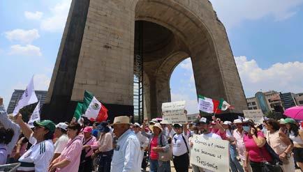 En estos momentos el contingente avanza por Paseo de la Reforma hacia el antimonumento, donde se prevé la realización de un mitin.