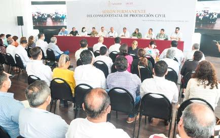 Gobierno del Es tado en coordinación con las autoridades federales y municipales, desde an tes de la temporada de lluvias, ha implementado acciones y proyectos en caminados a mitigar los riesgos y garantizar la integridad de los ciudada nos, destacó el goberna dor Carlos Manuel Merino Campos, al encabezar la Sesión Permanente del Consejo Estatal de Pro tección Civil.