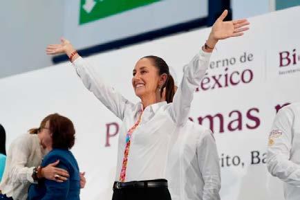 pero ahora todo lo contrario, reivindicamos a las y los trabajadores mexicanos, y en particular a nuestros hermanos que viven del otro lado de la frontera, que son héroes y heroínas de la patria, que no abandonan a sus familias, que no abandonan a nuestro país, porque así somos los mexicanos y las mexicanas, nos queremos, nos ayudamos; esa es la fortaleza del pueblo de México”. Recordó que continúan todos los Programas para el Bienestar, como Jóvenes Construyendo el Futuro; Sembrando Vida; la pensión para adultos mayores; pero además, se implementan nuevos apoyos como la Pensión Mujeres Bienestar que beneficiará a mexicanas de 60 a 64 años, y que en su primera fase apoyará a mujeres de 64 y 63 años en reconocimiento a su trabajo a favor de la construcción de la patria. “Soy madre, soy abuela, soy ama de casa y Presidenta de la República. Que nadie se burle de las mujeres nunca más”. Además, se implementarán: la nueva beca universal “Rita Cetina Gutiérrez”, la cual en 2025 comenzará apoyando a estudiantes de todas las secundarias públicas del país, pero que paulatinamente llegará también a preescolar y primaria. El programa Salud Casa por Casa para adultos mayores y personas con discapacidad, para el cual ya inició el censo, así como la contratación de más de 22 mil médicos, médicas,