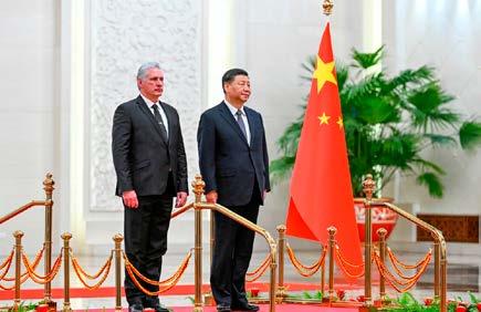 Miguel Díaz-Canel, presidente de Cuba junto a su homólogo chino, Xi Jinping, durante una visita de estado en Pekín.