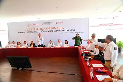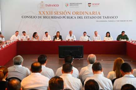 VILLAHERMOSA, TABASCO; LUNES 27 DE FEBRERO DE 2023.- Con un exhorto a las y los presidentes municipales para que participen para reforzar el trabajo de las Mesas de Seguridad Regionales y asuman el liderazgo en el tema de otorgar mayor y mejor seguridad a sus habitantes, el gobernador Carlos Manuel Merino Campos presidió la XXXII Sesión Ordinaria del Consejo de Seguridad Pública del Estado de Tabasco.