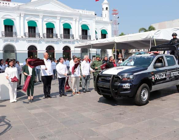 Dijo que las 35 camionetas, 11 vehículos tipo sedán, 8 bici patrullas ecológicas, además del sistema de radiocomunicación e insumos para la operatividad estratégica de los cuerpos policiales entregados en esta jornada, llevan ímplicito el compromiso que hay en la administración estatal para lograr un Tabasco más seguro.