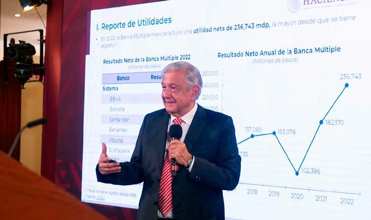 millón 628 mil 717 pesos. Con el apoyo a personas de la tercera edad de 19 mil 310 pesos, el monto total de su percepción anual fue de un millón 716 mil 391 pesos. No obstante, el Presidente no declaró percepciones por concepto de regalías de los libros que ha publicado ya siendo Presidente: Hacia una economía moral (Planeta, 2019) y A la mitad del camino (Planeta, 2021), en este último las ganancias podrían ser de 3 millones de pesos, según lo estimado por el propio mandatario.