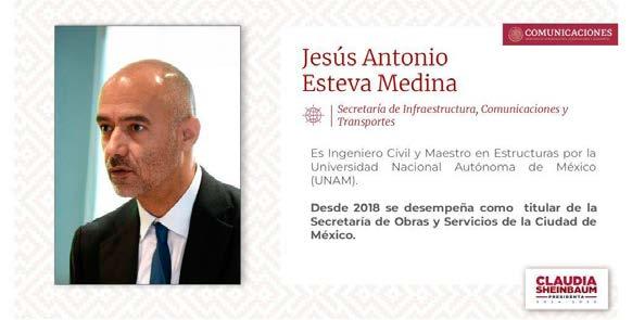Nombres de Sheinbaum Es que Sheinbaum nombro a Luz Elena González Escobar, como titular de la secretaría de Energía; a Jesús Antonio Esteva Medina, de Comunicaciones, Transportes e Infraestructura.