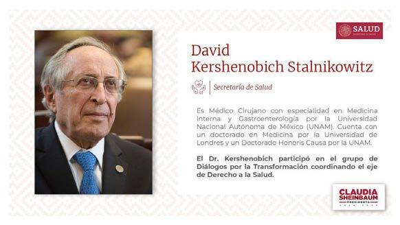 Y es que Kershenobich es doctor en Medicina por la Universidad de Londres y un doctorado Honoris Causa por la UNAM. Fue director general del Instituto Nacional de Ciencias Médicas y Nutrición ‘Salvador Zubirán’ entre junio de 2012 y hasta el año 2022.