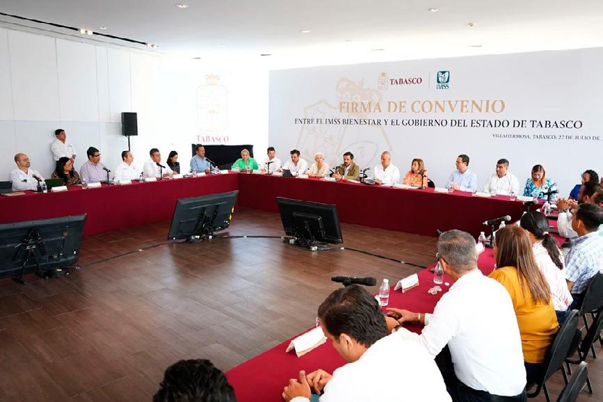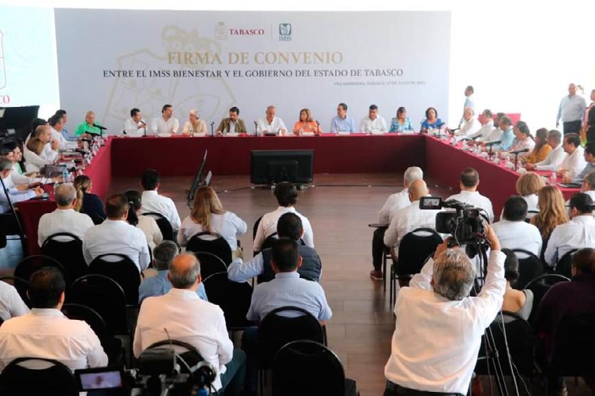 El gobernador, Carlos Manuel Merino Campos y el director del IMSS, Zoé Robledo Aburto, suscribieron el Convenio de Coordinación que establece la forma de colaboración en materia de personal, infraestructura, equipamiento, medicamentos y demás insumos asociados para la prestación gratuita de servicios de salud, para personas sin seguridad social en Tabasco, se traza la ruta para dar vida al IMSS-Bienestar.