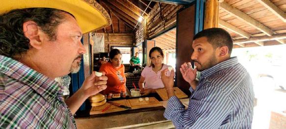 En Emiliano Zapata, el especialista en catas, visito queserías ubicadas en la cabecera municipal, y sostuvo encuentros con los propietarios agricultores, ante quienes compartió sus experiencias de éxito y reconoció el arduo