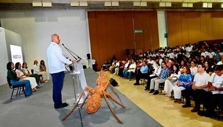 Al lado de la presidenta del Sistema DIF Tabasco, Guadalupe Castro de Merino, el Ejecutivo estatal señaló que, sin duda, los insectos son fuente de inspiración, al igual que las numerosas obras arquitectónicas en el mundo que se basan en las estructuras de los insectos.
