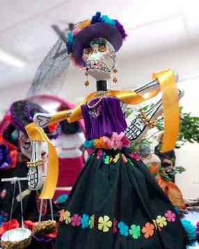 Por su parte, la di rectora de Casa Hogar, Norma Alicia Hernández Sánchez, explicó cada uno de los elementos que se utilizaron para la elaboración de la catri na adornada con tonos naranja, morado y negro que muestra dentro de su falda un altar de muertos.