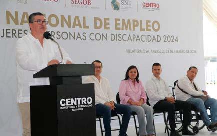 Vhsa. Tab., 28 de febrero de 2024.- Al inaugurar la Feria Nacional de Empleo para Mujeres y a Personas con Discapacidad 2024, el secretario de Gobierno, José Antonio de la Vega Asmitia, aseguró que el gobernador Carlos Manuel Merino Campos encabeza una tarea diaria con todos los titulares de su gabinete, para cerrar el sexenio con los mejores resultados en materia de gobernabilidad democrática y seguridad.