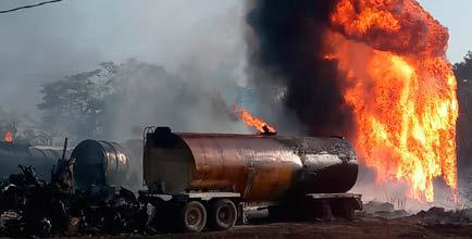 para poder entrar a sofocar y pueda entrar personal de Pemex a su reparación. De acuerdo con el reporte, una persona resultó lesionada y fue atendida oportunamente por personal de la Cruz Roja, además, se reportó fuego en tres camiones cisterna y un vehículo.