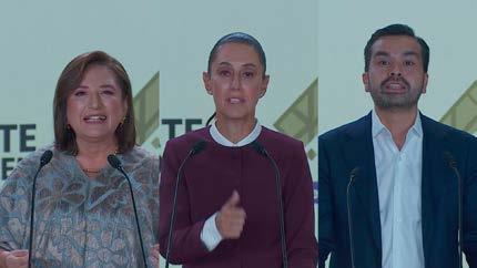 CIUDAD DE MÉXICO, 28 DE ABRIL.– Las candidatas Claudia Sheinbaum Pardo y Xóchitl Gálvez Ruiz, así como el candidato Jorge Álvarez Máynez se enfrentaron nuevamente cara a cara en la antesala de la elección presidencial más grande de la historia de México.
