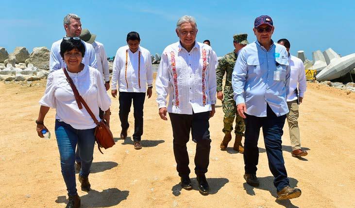 CIUDAD DE MÉXICO.- Al concluir la gira de supervisión por el Istmo de Tehuantepec, el presidente Andrés Manuel López Obrador destacó que las obras del puerto de Salina Cruz, Oaxaca, entre ellas, el rompeolas y las plataformas para contenedores, fortalecerán el comercio con la costa este de Estados Unidos, lo que significará “progre-