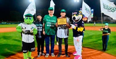 VILLAHERMOSA, TAB., 28 DE MAYO DE 2023.Los Olmecas de Tabasco rindieron un homenaje al ex liga mayorista y legendario lanzador tabasqueño Cecilio Ruiz Ferrer, en una emotiva ceremonia en la que el gobernador Carlos Manuel Merino Campos entregó un reconocimiento al oriundo de Balancán.