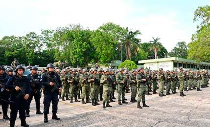 cada una de sus bases con personal del Ejército, Guardia Nacional, Policía Estatal y Policía Municipal. Al término de la ceremonia, el mandatario, junto con los integrantes de la Mesa para la Construcción de Paz y Seguridad en Tabasco, sesionaron en la instalación militar.