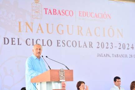 Tras poner en marcha el nuevo ciclo escolar 2023-2024 en punto de las ocho de la mñana de este lunes en el plantel educativo jalapaneco, el mandatario puntualizó que Tabasco se reconcilia con el desarrollo, el bienestar y la educación, transformando toda ad-