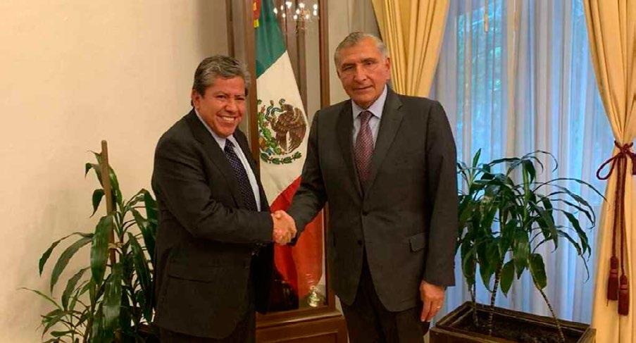 Ciudad de México.- El secretario de Go bernación, Adán Augus to López Hernández, recibió en sus oficinas al gobernador de Zacate cas, David Monreal Ávi la, para dialogar sobre el problema de violencia e inseguridad que padece dicha entidad y refren darle al respaldo del go bierno federal a su ad ministración.