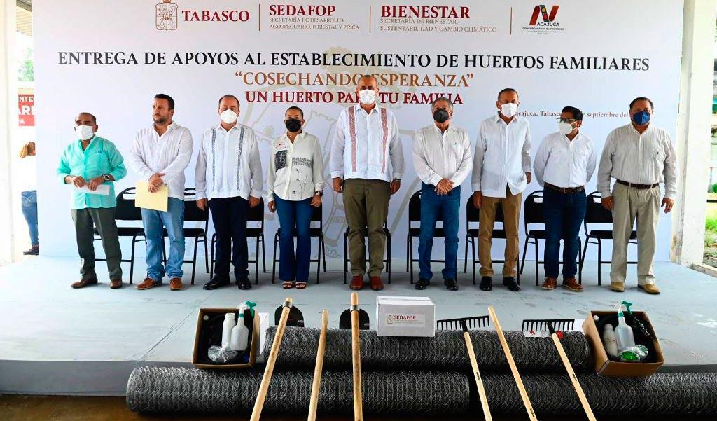 “Hoy estamos plantando la semilla de la soberanía alimenta ria y productiva fami liar que todos quere mos en Tabasco; por eso los invito a traba jar unidos y mostrar nuestra capacidad de construir el progresos, poniendo en marcha el huerto familiar que hoy reciben”, externó.