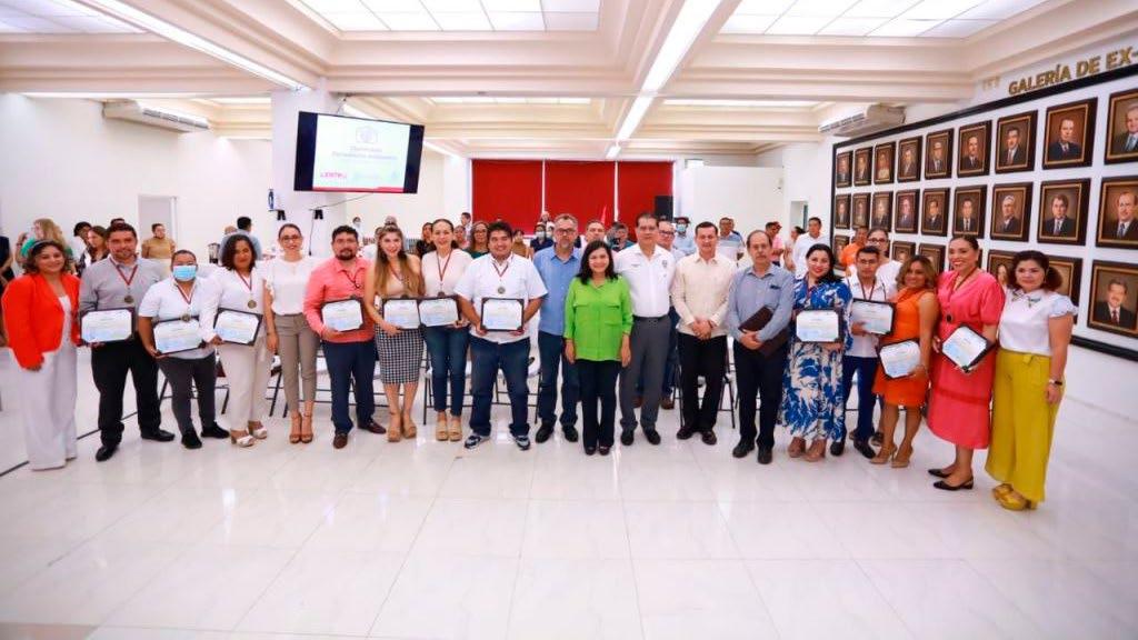 Villahermosa, Tab., 29 de marzo de 2023.Al entregar diplomas y medallas Orgullo Verde a comunicadores y docentes, luego de 120 horas de estudio y trabajos, la presidenta municipal Yolanda Osuna Huerta, junto al rector de la Universidad Juárez Autónoma de Tabasco (UJAT), Guillermo Narváez Osorio, clausuró el Diplomado en Periodismo Ambiental, Lagunas Urbanas de Centro, en el que participó El Colegio de la Frontera Sur (ECOSUR).