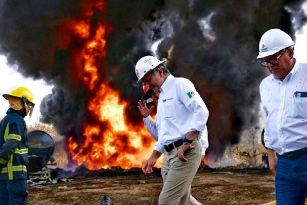 ElDirector General de Pemex, Octavio Romero Oropeza, visitó la zona donde se generó un incendio causado por una toma clandestina ayer 28 de marzo en el kilómetro 124 de la carretera Villahermosa-Cárdenas en Tabasco.