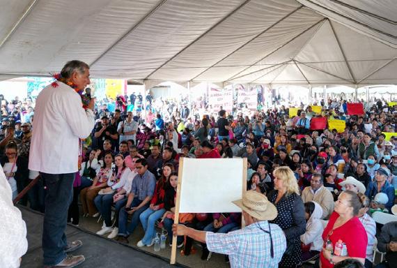 un jornalero que dijo ser originario de la comunidad de Metlatónoc, Guerrero, quien le agradeció su decisión de destinar parte de los 5 millones de pesos de financiamiento ofrecido por su partido, Morena, para la rehabilitación y equipamiento del centro de salud de su pueblo, y le expresó su confianza porque “usted siempre va a ver por los más necesitados”.