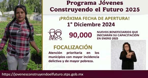 cisó Sheinbaum. Por su parte, el secretario del Trabajo, Marath Bolaños confirmó que serán 90 mil nuevos beneficiarios que comenzarán con su capacitación en enero 2025.