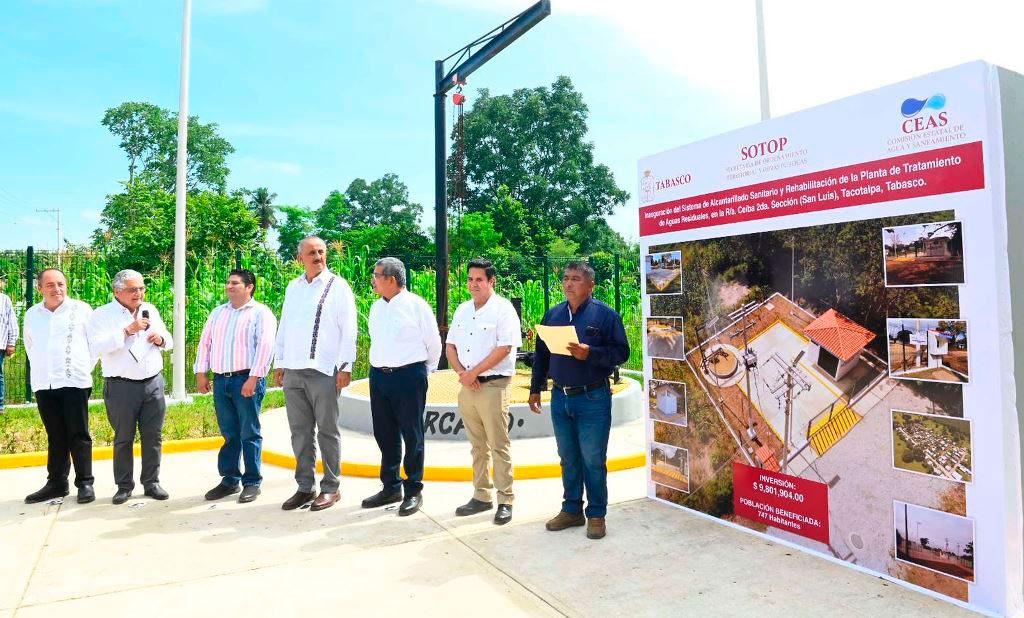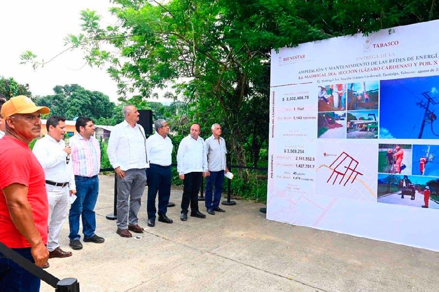 A su vez, el al calde Ricki Arcos brin dó un reconocimiento a todo el respaldo que el Gobierno de Carlos Merino brinda para que los beneficios de las acciones de bienes tar puedan llegar a las familias tacotalpenses, y en correspondencia, ofreció toda la dispo sición y buena volun tad del Ayuntamiento para seguir realizando, juntos, los trabajos y acciones que permitan al municipio revertir sus rezagos.Luego en el Eji do Ceiba segunda sec ción, Merino Campos y Arcos Pérez inaugu raron el nuevo Siste ma de demandaqueResiduales,TratamientoSanitariosAlcantarilladoyPlantadedeAguasunaobraatiendeunaañejadelapobla ción tacotalpense y que se ejecutó con una inversión de 9.8 millo nes de pesos beneficio de cerca de 1 mil habi tantes.En presencia de Armando Padilla He rrera, director de la Comisión Estatal de Agua y Saneamiento (CEAS), el mandata rio puso de manifies to que de parte del Gobierno del Estado, Tacotalpa “va a tener toda la colaboración y todo elEnapoyo”.elejido Zunú y Patastal, inauguró otro Sistema de Alcan tarillado Sanitario, con una Línea de Conduc ción de 2.7 kilómetros y una Planta de Trata miento de Aguas Re siduales, que requirió una inversión de 9 mi llones de pesos en be neficio de más de 750 habitantes. ‘Acto de Justicia’ Padilla Herrera destacó que esta obra contribuirá a revertir el proceso de conta minación que vivían los cuerpos de agua que bañan la zona, al tiempo que subrayó que el organismo ope rador de agua potable y saneamiento en el estado dirige actual mente esfuerzos para “hacer incrementos en el porcentaje que te nemos que ir subiendo en los rubros de su ministro de agua, de redes de atarjeas y de tratamiento de aguas residuales”.Eltitular de CEAS dijo que hoy la administración pú blica vive una nueva etapa en la que no tie ne cabida “el negocio del diezmo”. Se acabó la pedidera de dinero a los contratistas y el recurso rinde porque hay una eficiente ad ministración, lo que permite ampliar –en la mayor parte de los ca sos– las metas de los proyectos de infraes tructura, estableció. Más tarde, en el poblado Oxolotán, Carlos Manuel Merino entregó diversas obras complementarias de la Pasa a la 4...