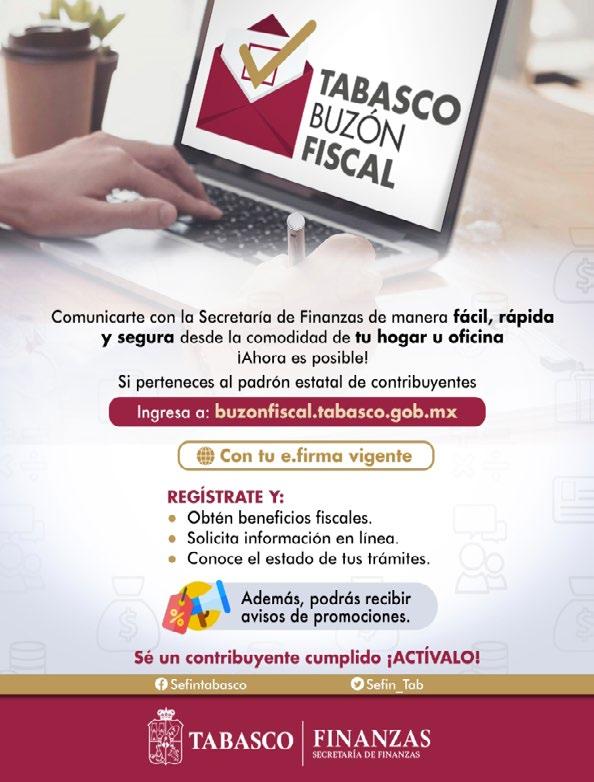 Acerca la Secretaría de Finanzas oficinas a ciudadanía, para tramitar pagos y servicios Villahermosa,Tabasco;mar tes 30 de agosto de 2022.- La Secretaría de Finanzas acerca oficinas para que los tabasqueños cum plan con sus contri buciones o realicen pagos de diferentes servicios, como el Buzón Fiscal y una caja recaudadora en los Juzgados Civiles y Familiares, en la ave nida Méndez. Destacó que, para ser un contri buyente cumplido, puede activar el Bu zón Fiscal, en el que podrá obtener be neficios fiscales, so licitar información en línea y conocer el estado de sus trá mites. Pidió ingresar a buzonfiscal.tabas co.gob.mx, con su e.firma vigente, para poder ser atendido de manera fácil, rá pida y segura, ade más de recibir avisos de promociones.Además,Finan zas instaló una nueva caja recaudadora en los Juzgados Civiles y Familiares, ubi cados en la avenida Gregorio Méndez # 2410, en la colonia José Colomo. Podrán realizar trámites de forma rápida y segu ra de certificación de documentos, refren dos y canje de pla cas, en un horario de lunes a viernes de 8 de la mañana a 4 de la tarde.De esta forma, la dependencia faci lita a los tabasque ños los trámites que deben hacer para ser contribuyentes y ciudadanos respon sables y cumplidos con sus obligaciones.