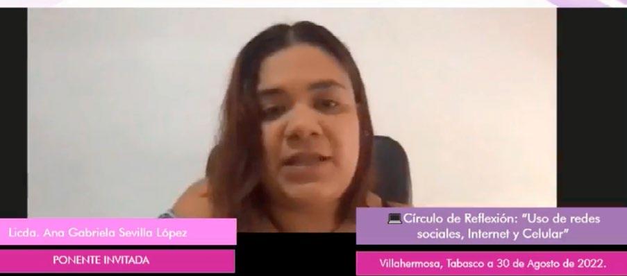 Villahermosa, Tabas co; martes 30 de agosto de 2022.- Con un llamado a saber apro vechar las diversas he rramientas tecnológicas y tener precaución de la información que se comparte en el espa cio virtual, la psicóloga clínica especializada en mediación, Ana Gabriela Sevilla López, presentó este martes la conferen cia “Uso de redes socia les, internet y celular”. En las acostum bradas capacitaciones que ofrece todos los días el Instituto Estatal de las Mujeres (IEM), la espe cialista consideró que se debe educar a los más pequeños y asesorar a los llamados integran tes de la “Generación Z”, quienes nacieron con la tecnología y la manejan casi de forma natural.