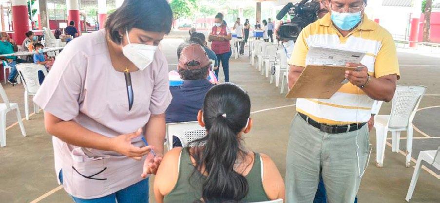 Villahermosa, Tabas co; martes 30 de agosto de 2022.- El per sonal de la Secretaría de Salud, continuó du rante este martes con la Jornada de Vacunación contra el COVID-19 en las canchas de básquet bol de Ciudad Deportiva del municipio de Centro. Durante el segun do día de atención, la Secretaría de Salud pro gramó para suministrar un total de 250 dosis del biológico de Pfizer para niños de 5 a 11 años de edad, adolescentes de 11 a 17 años, así como 300 de Cansino para adultos de 18 años de edad en adelante.En entrevista, la encargada del módulo de inoculación, Selene Ruiz Aquino, informó que durante el lunes se aplicaron alrededor de 156 dosis entre los tres grupos de “Estaedad.esuna nue va semana de vacuna ción, vamos a estar de lunes a viernes de 08:00 de la mañana a 02:00 de la tarde, vamos a estar aplicando lo que es pri mera dosis en el grupo de 5 a 11 años, segunda dosis a los adolescentes de 11 a 17 años y los re fuerzos correspondien tes de mayores de 18 años en ambos casos, los niños y los adolescentes; son el biológico Pfizer”, subrayó. La funcionaria del sector salud hizo la in vitación a los padres de familia para que lleven a sus hijos a vacunarse ya que continúa vigente el contagio de COVID.