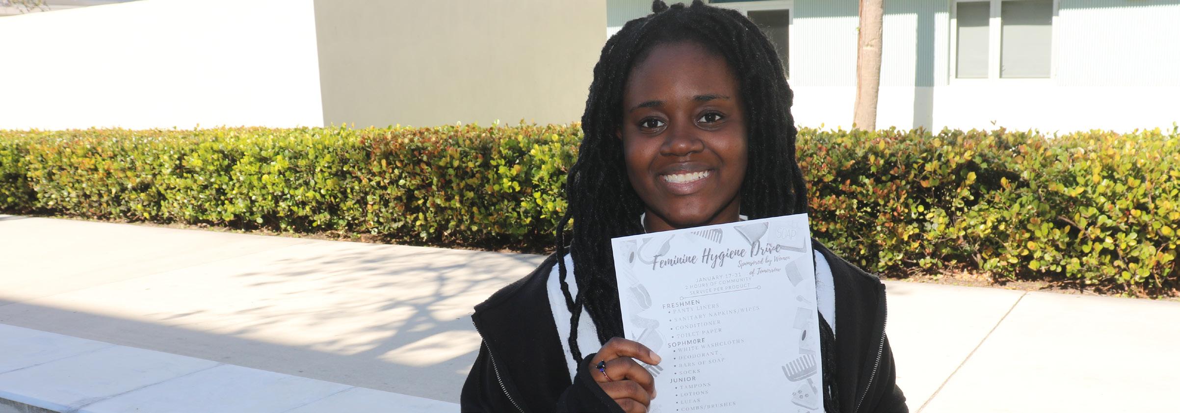 When recruiting board members, Alexis worked precisely and punctually with events, plans and activities. She encourages all members to spread the word about the non-profit and its goals, with their most recent goal focusing on their feminine hygiene drive, sponsored by Women of Tomorrow. Alexis chose to establish her drive as president of the club and in accordance with the sponsor, Algebra II and Mathematics for data and Financial Literacy teacher, Trisha Jarrett.