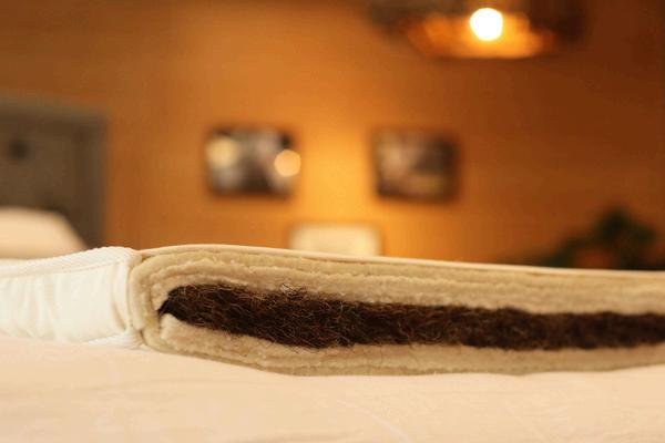 -opdekmatras is royaal gevuld met extra gekruld paardenhaar, kamelenwol en katoen