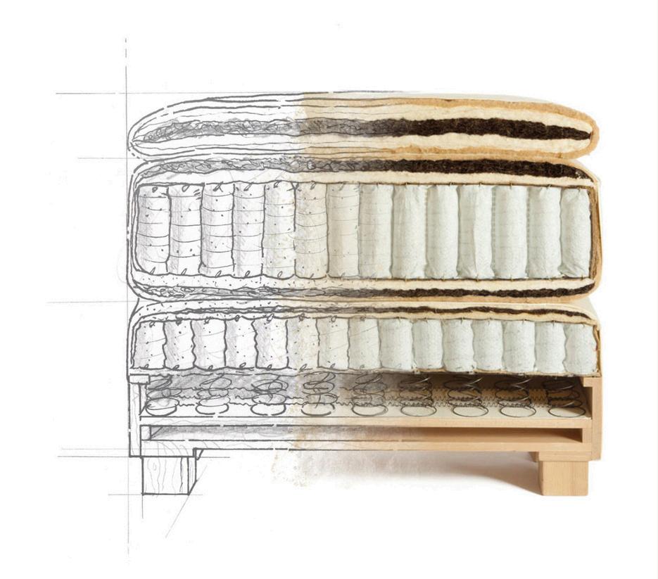 -natuurlijke lagen van schapenwol, katoen, vlas, extra gekruld paardenhaar