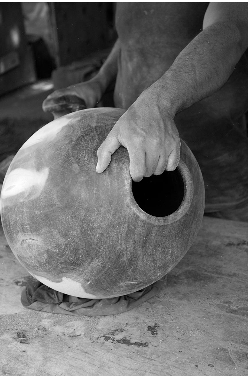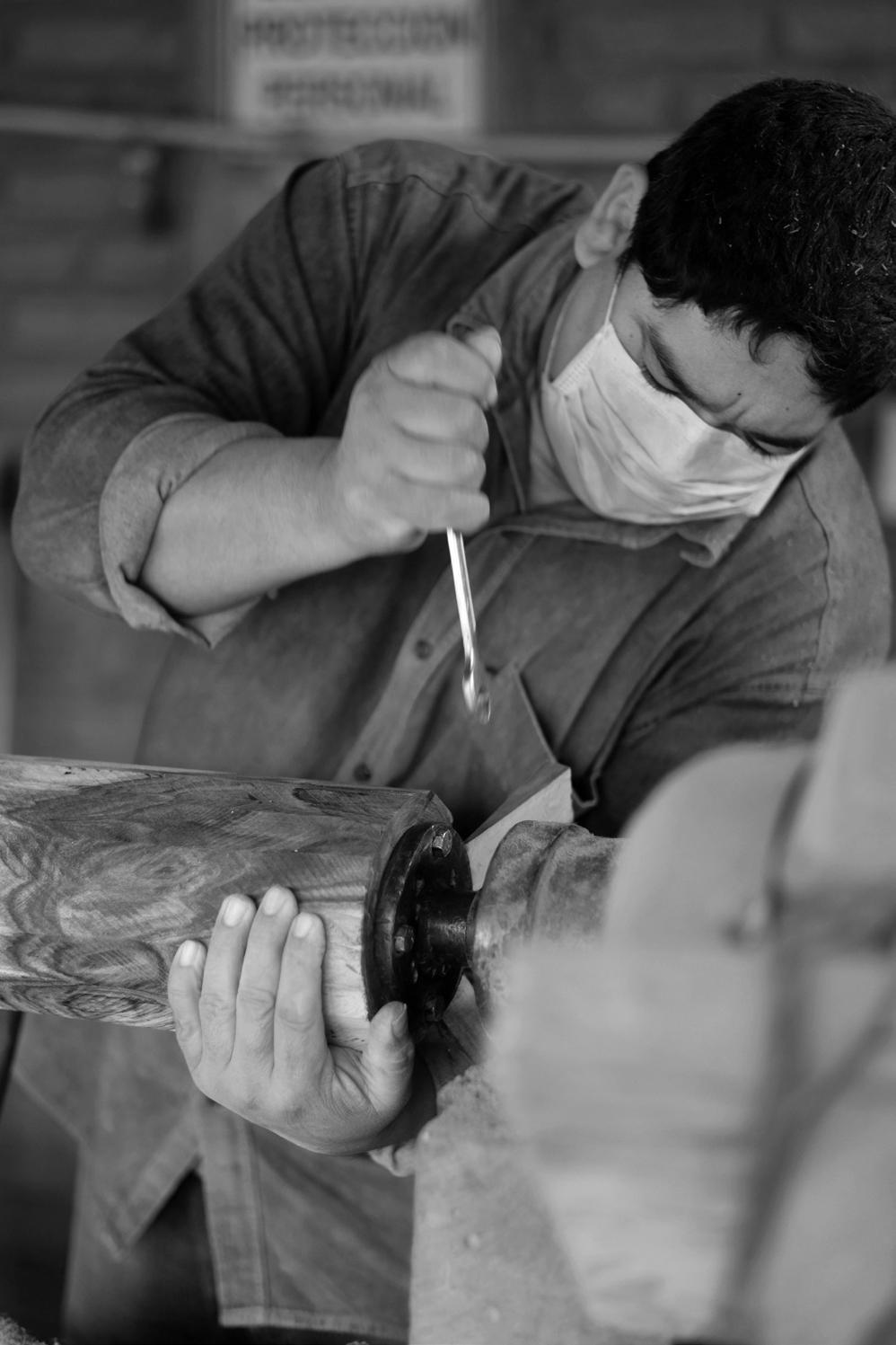 The Árbol Collection is rooted in the Bolivian Chiquitano Dry Forest, where tropical hardwoods are rescued from trees felled as the forest is cleared—reclaimed before they are burned. At the workshop in Santa Cruz, the salvaged roots, trunks, and branches are carefully sorted, air-dried, and stored before being shaped.