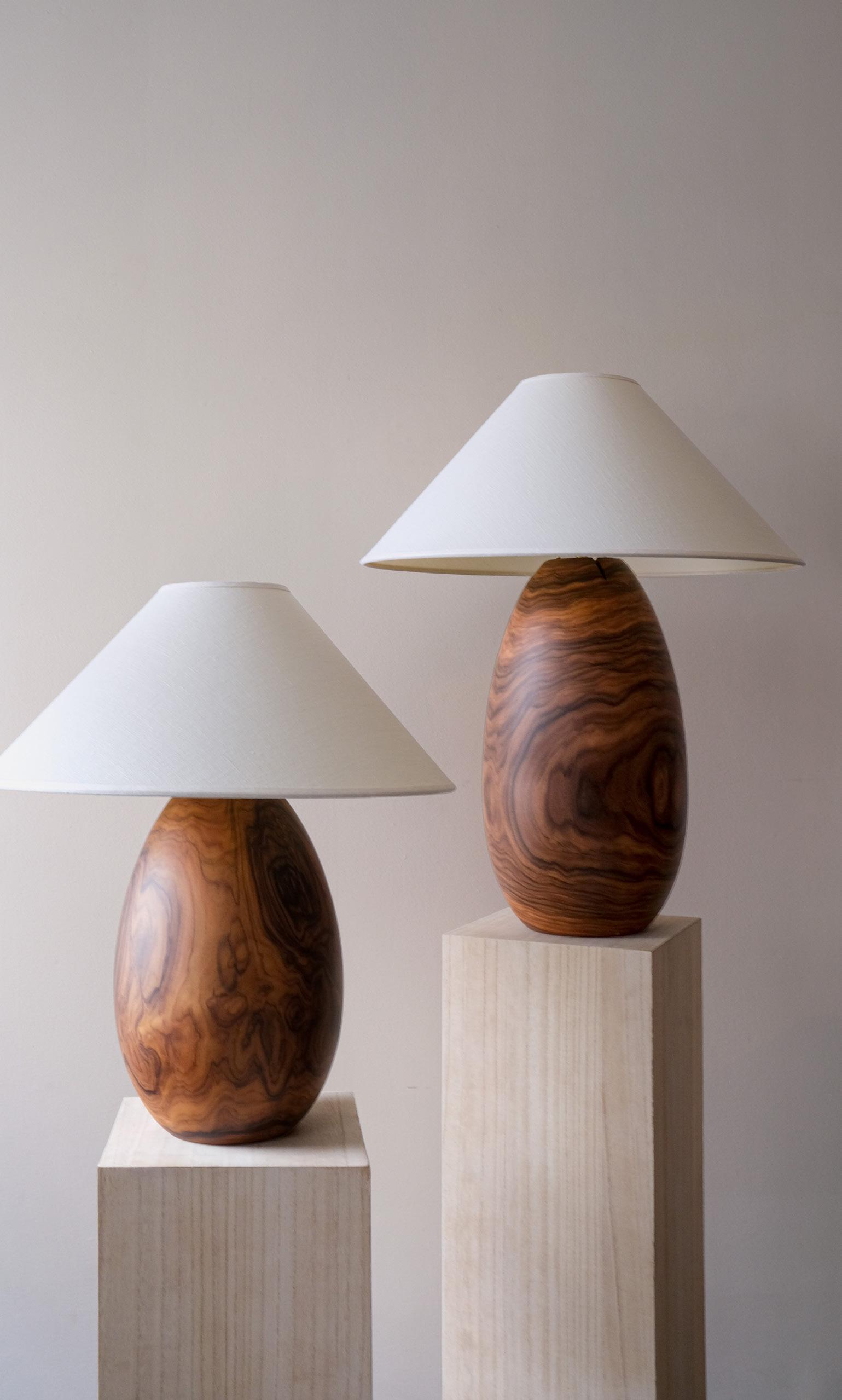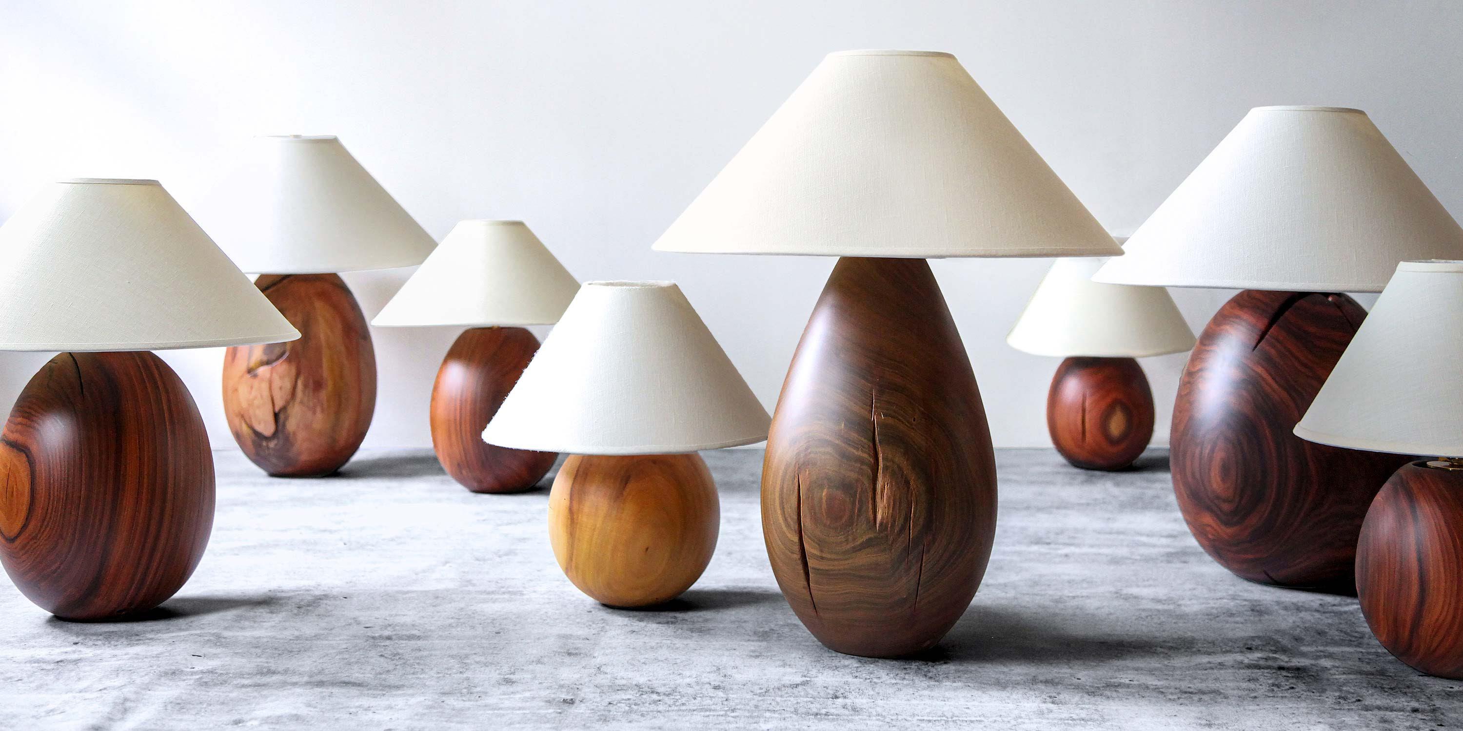 Each lamp is defined by the grain, color, and natural form of the wood, carrying the pedigree of its material—no two alike. At its core, the collection reflects a desire to preserve what is ancient and essential, in both materials and techniques. Drawing on the spirit of tropical modernism, the designs embrace their South American roots: clean, elemental forms balanced with the richness of the wood’s natural character.