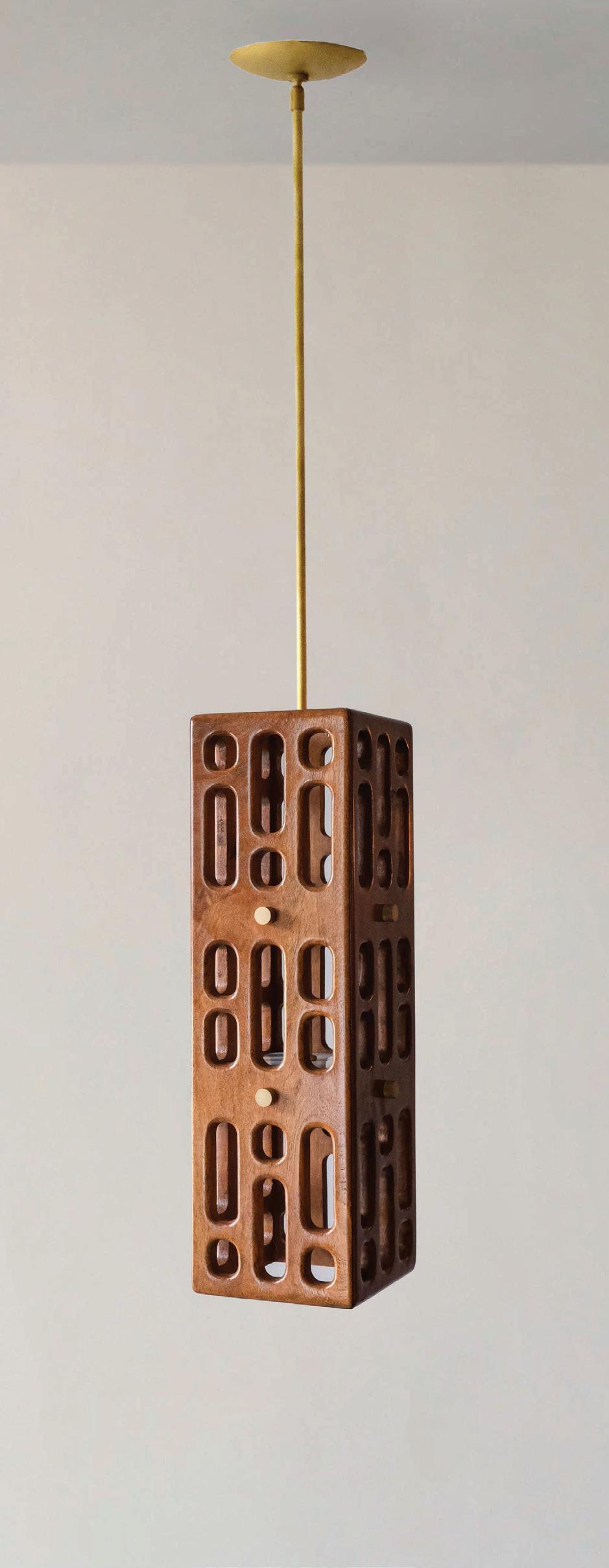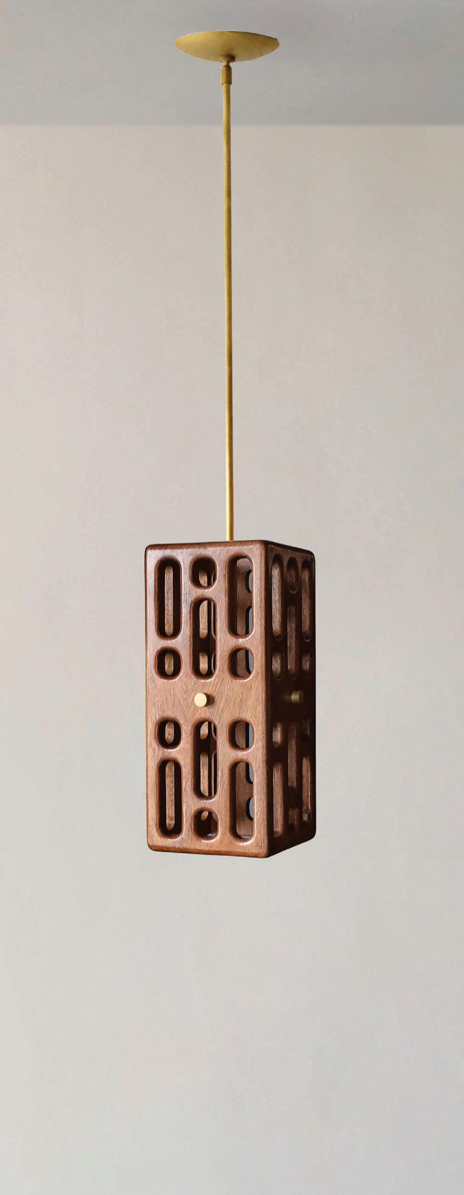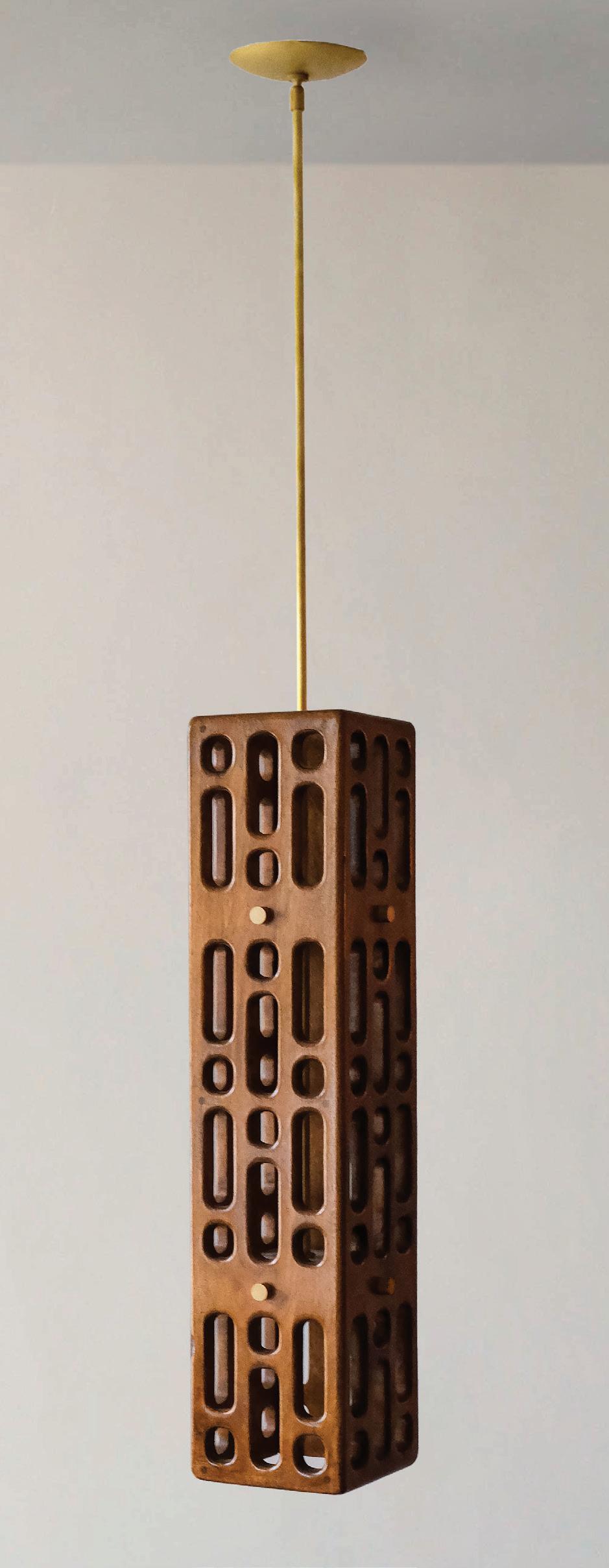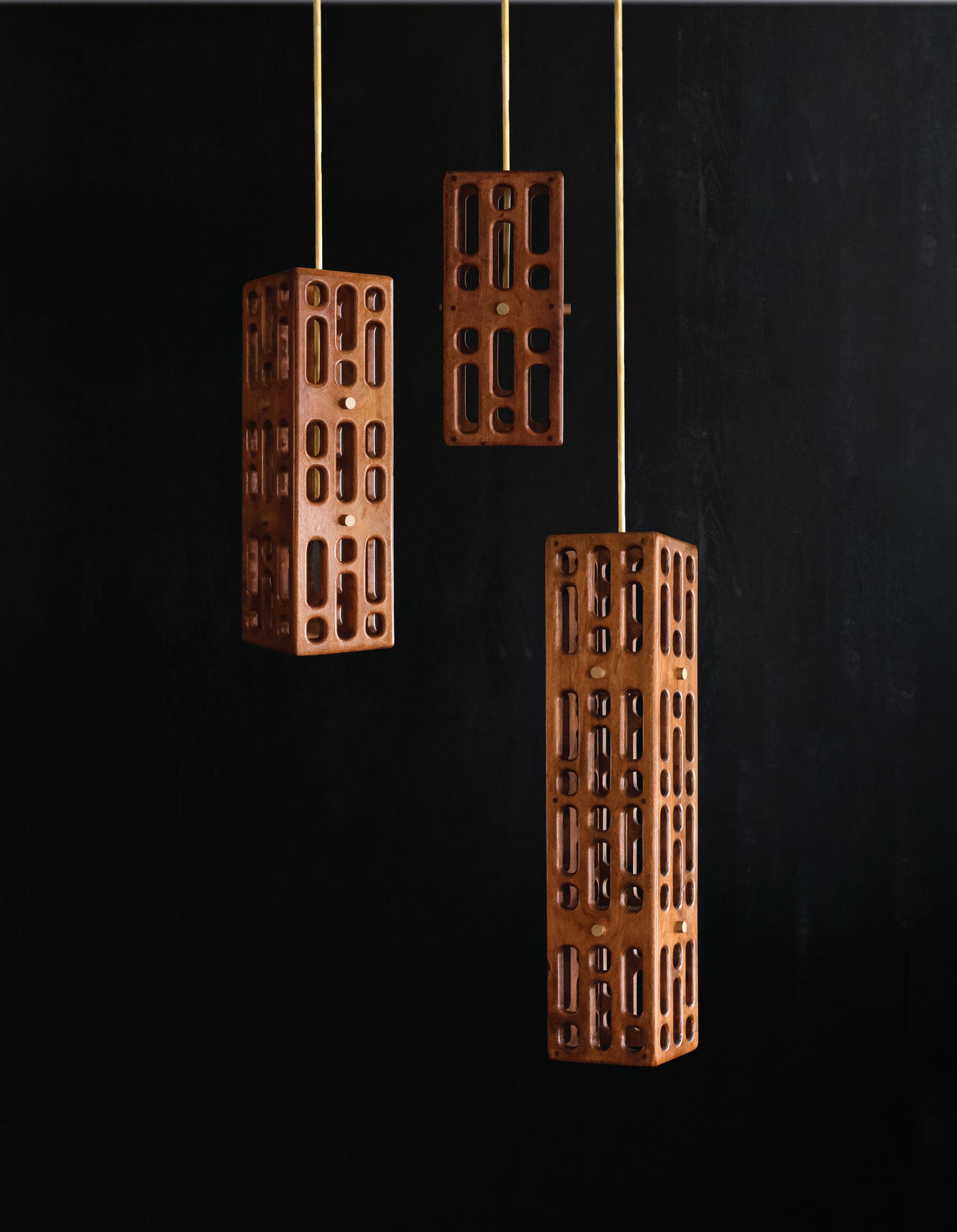 In designing this collection of lighting, we recontextualized the concept of celosias while paying homage to the traditional craft. Mirroring the disciplined workmanship of the lattice work, the fixtures’ clean lines and floating geometric volumes cast a diffused glow.