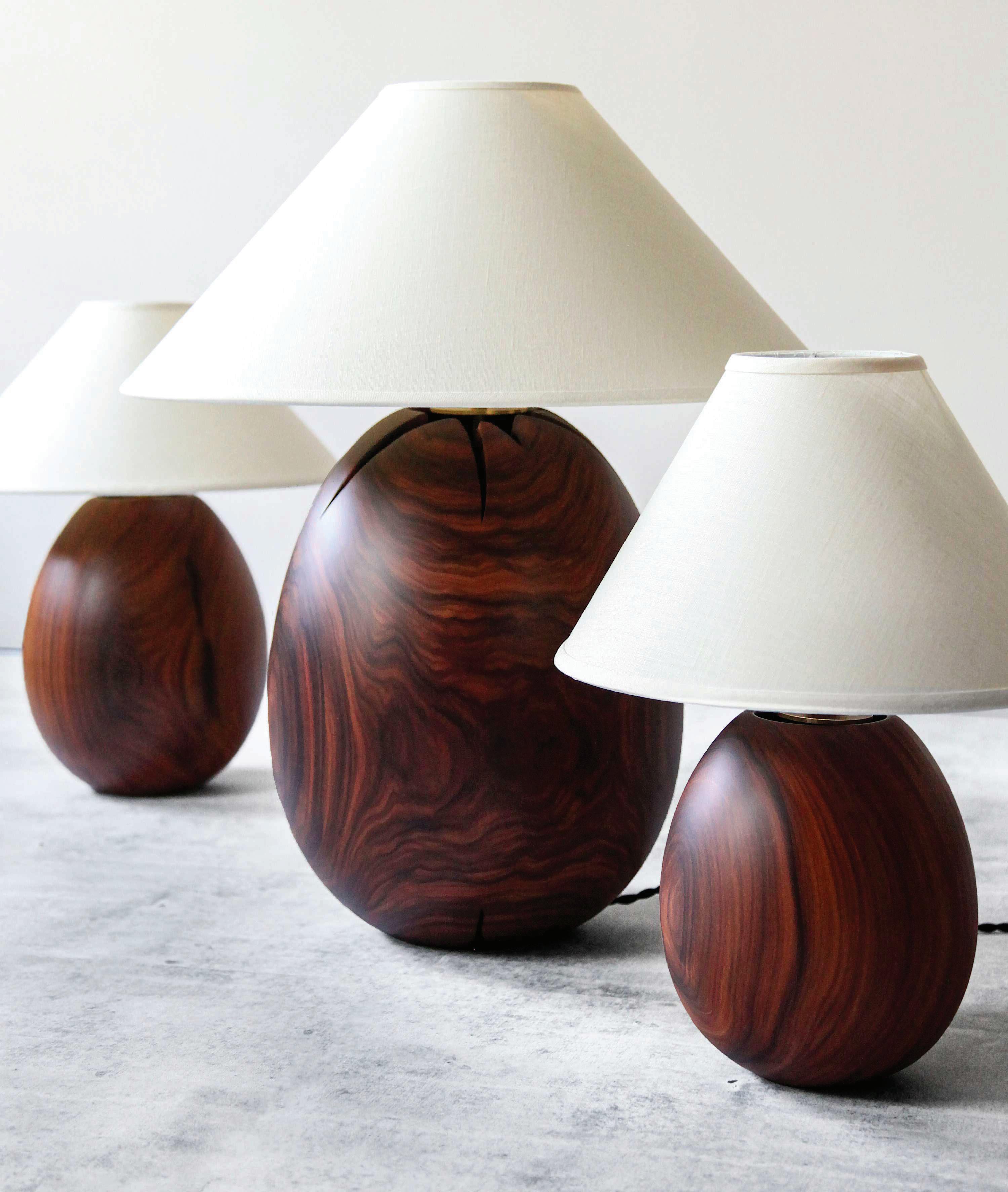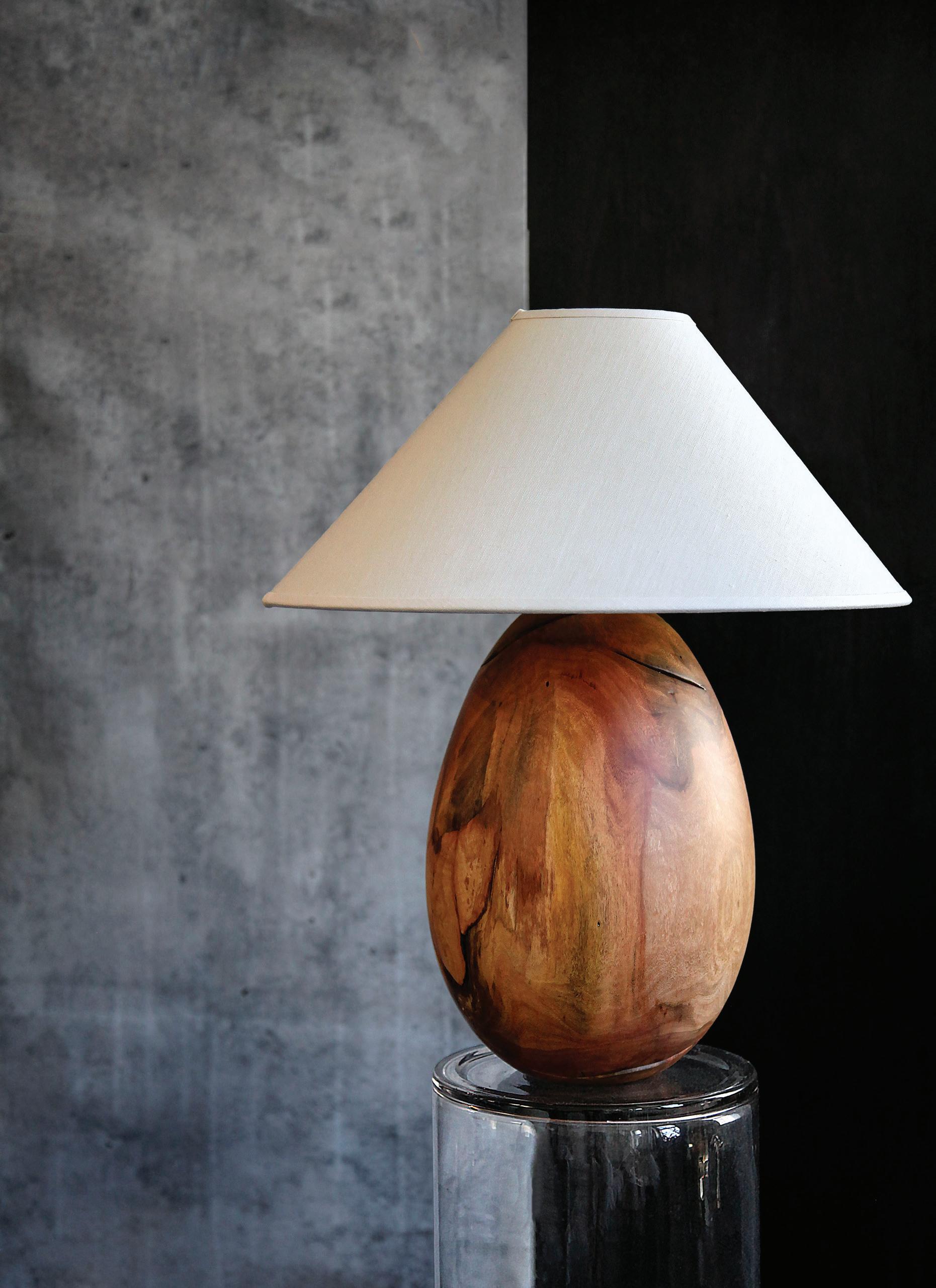 Each lamp in the collection is one of a kind, with its specific type of hardwood called out. We work with local experts to identify the species of each salvaged tree, with a range of woods having been revealed, including: