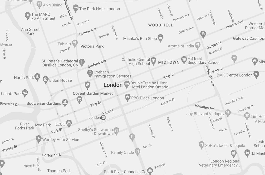 Nearby attractions include Victoria Park, the Grand Theatre, Budweiser Gardens, and the historic Covent Garden Market