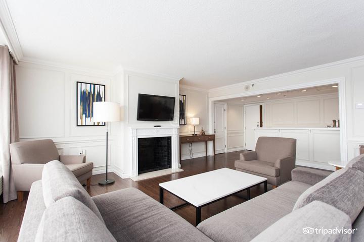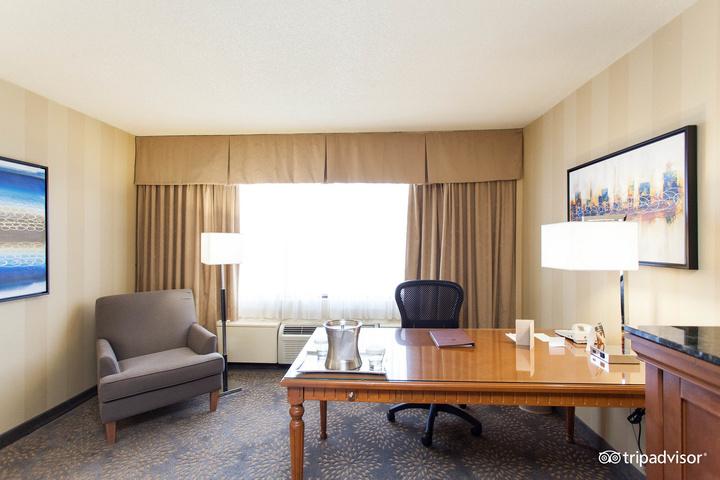 This spacious suite has a sophisticated dining space with a wide table and a fully equipped wet bar Take pleasure in the distinction of a separate living space smartly separated from the bedroom by a subtle privacy door Stay connected with WiFi access, conduct business efficiently at the well-equipped workstation, and relax with a 42-inch high-definition television.