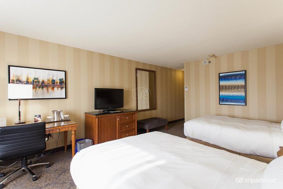 Each guest room features two double or queen beds, a well-appointed workspace with a generously sized desk, seamless WiFi connectivity with wireless printing capabilities, a 37-inch high-definition television, and an MP3 alarm clock Additional amenities include a hairdryer, iron, and coffee maker