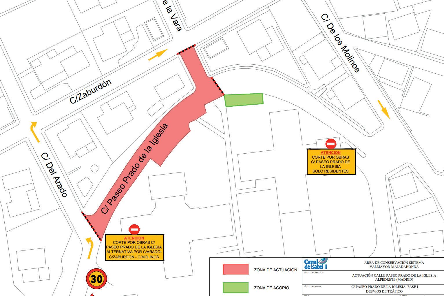 Iglesia y una vez la obra llegue al cruce de la calle de la Vara con calle Zaburdón, se reanudará la circulación de vehículos por la calle Prado de la Iglesia. El itinerario alternativo comprende la calle Arado, Zaburdón y calle Los Molinos.