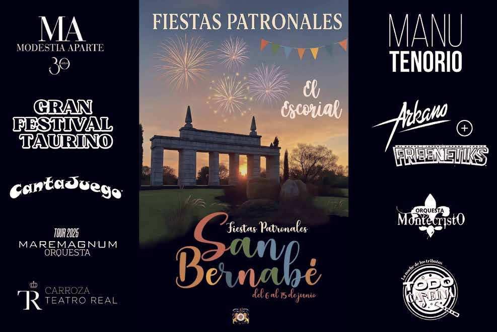 El Escorial vivirá en unos días sus estas grandes, las de San Bernabé, del 6 al 15 de junio. Este año contará con las actuaciones de Modestia Aparte, Manu Tenorio o una actuación de rap con los mejores improvisadores de España. Las familias contarán con precios másreducidosenlasatraccionesdel recinto ferial. Esto es así gracias a la negociación entre el Ayuntamiento y los feriantes y a la eliminación de la tasa por explotación. Además, el día 10 de junio se celebrará el “Día del niño” con precios reducidos a la mitad.