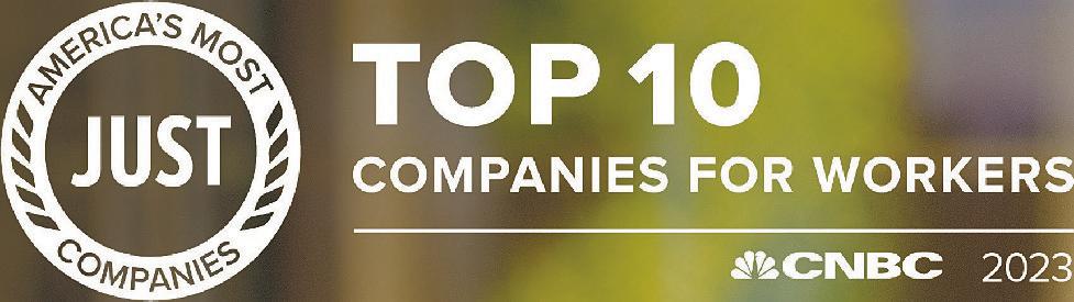 Al determinar cuáles son las 10 mejores empresas para los trabajadores, JUST Capital utilizó su Índice de Trabajadores Líderes, el cual da seguimiento al 20% de las principales empresas con mejor rendimiento en las cinco cuestiones relacionadas con los trabajadores que se evalúan en su Clasificación anual. https://justcapital.com Bank of America, N.A. Miembro de FDIC. Igualdad de oportunidades de crédito © 2023 Bank of America Corporation. Todos los derechos reservados.