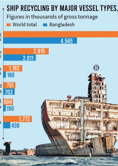Los buques europeos se envían normalmente a la India para su desguace, y los de mayor tonelaje a Bangladés y Pakistán.