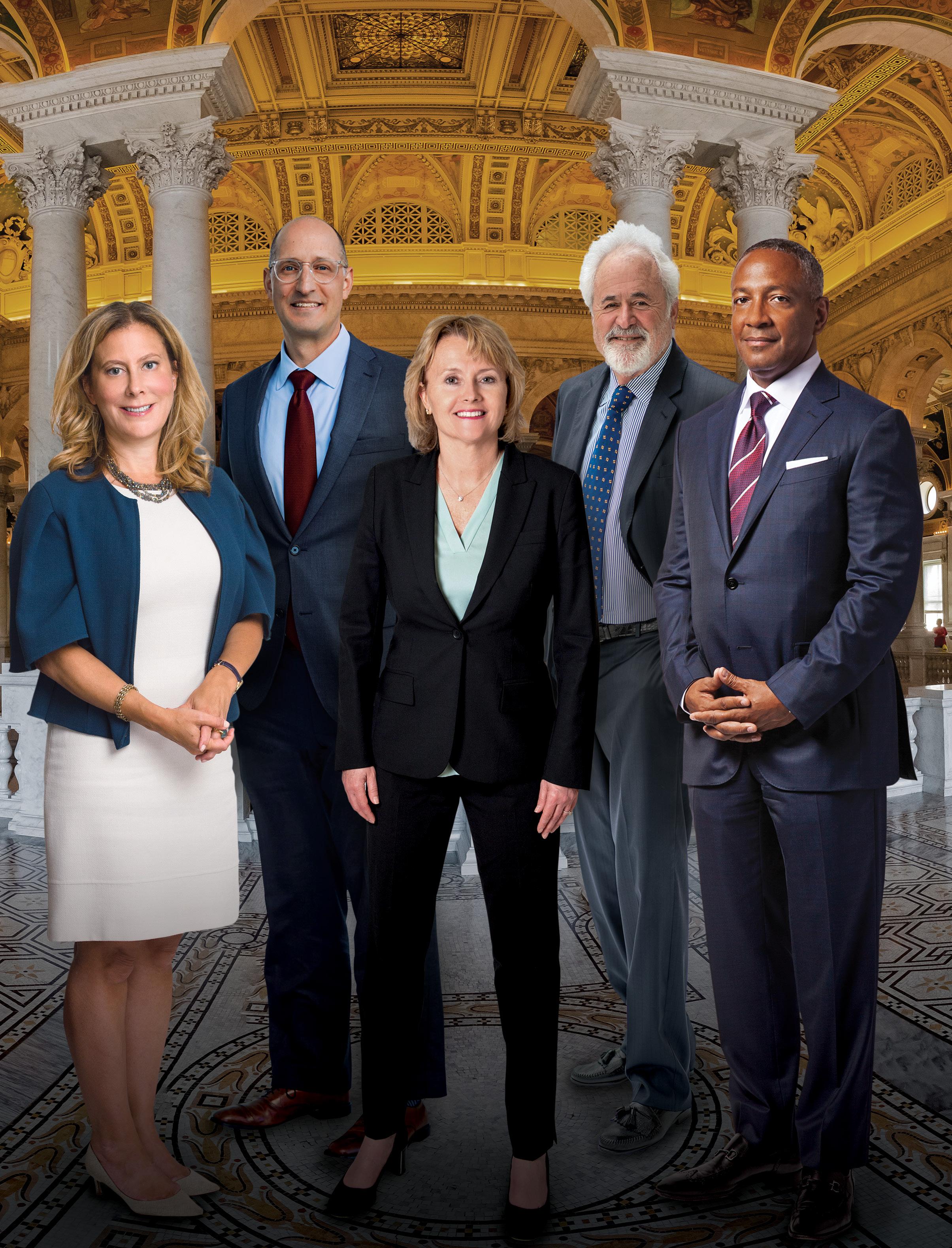 From left to right: Jelena McWilliams, Debra Yang, Matthew Minner, Karen Dunn, Neal Manne, Taj Clayton, Elaine Golin, Noah Phillips, Donna Wilson, Stuart Grossman, Larry Rogers, William Savitt, Deneen Howell, Sabina Lippman and Hamish Hume.